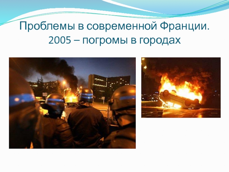 Слайд 24Проблемы в современной Франции. 2005 – погромы в городах
