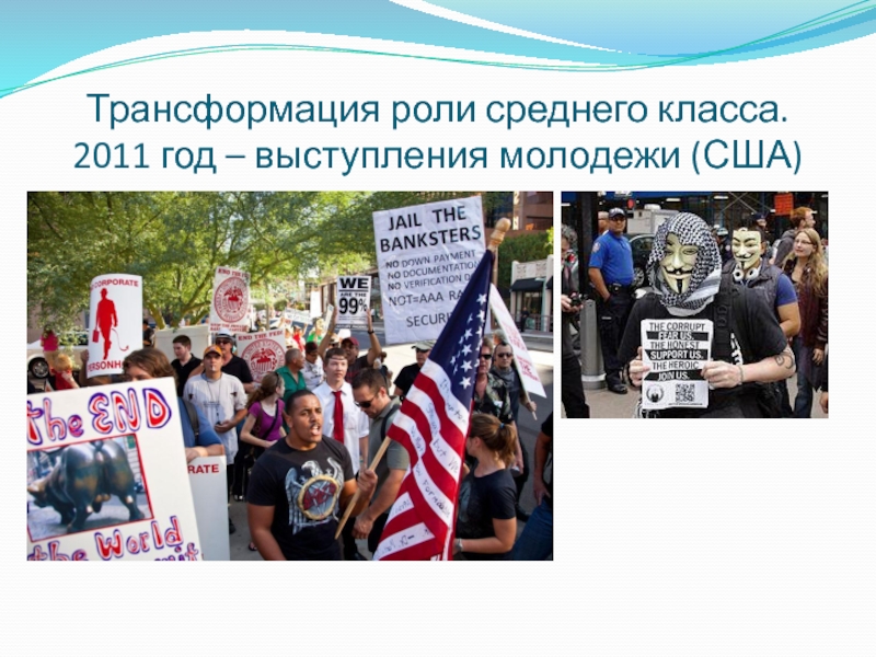Слайд 22Трансформация роли среднего класса. 2011 год – выступления молодежи (США)
