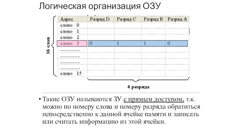 Такие ОЗУ называются ЗУ с прямым доступом,
