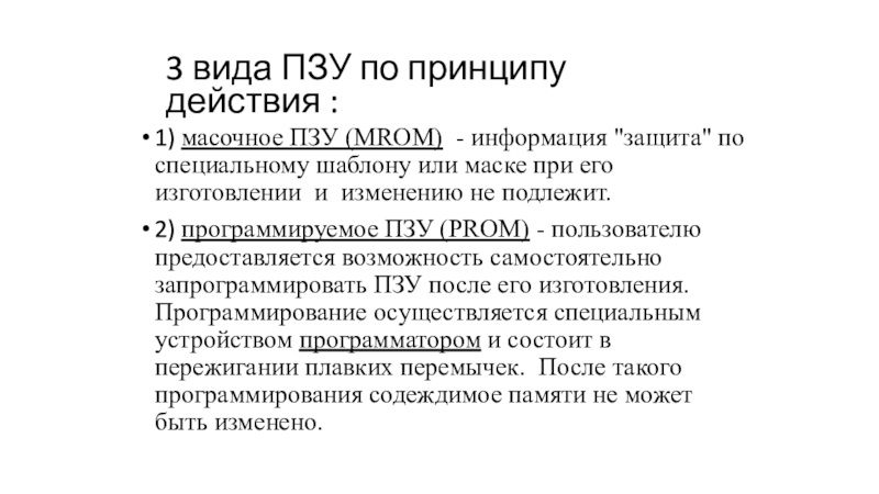 Слайд 48По выполняемой функции ЗУ (память) можно классифицировать на: