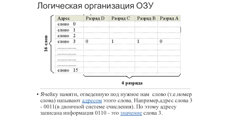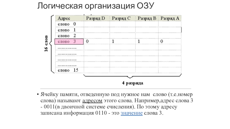 (т.е.номер слова) называют адресом этого слова. Например,адрес слова 3 -