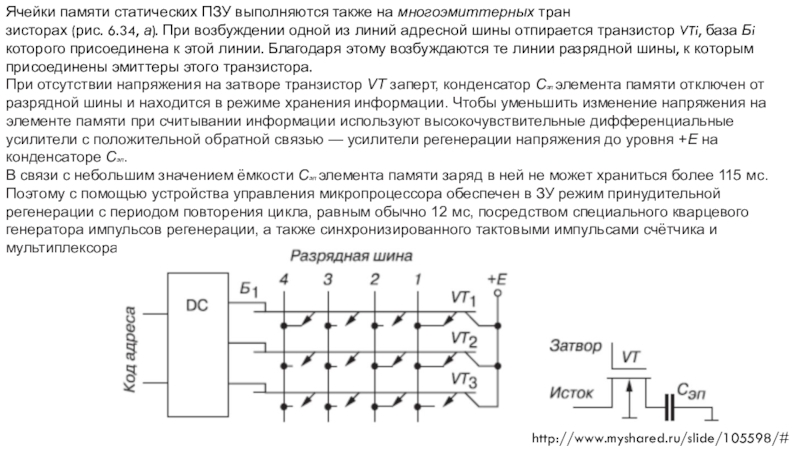 Слайд 51В статических ОЗУ записанная информация постоянно хранится в выделенном для