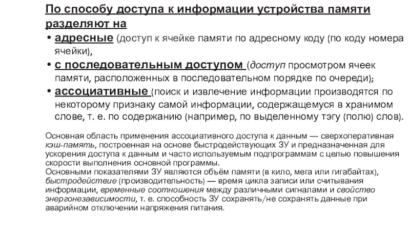 Слайд 17По способу доступа к информации устройства памяти разделяют на