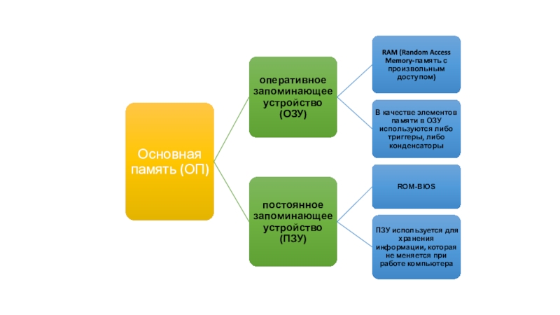 запоминающие устройства (ОЗУ) и постоянные запоминающие устройства (ПЗУ).