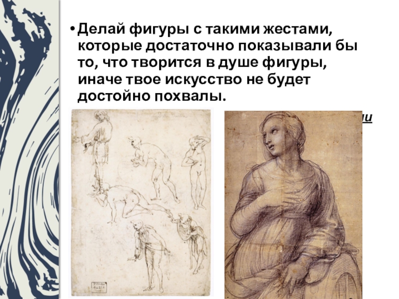Делай фигуры с такими жестами, которые достаточно показывали бы то, что творится в душе фигуры, иначе твое