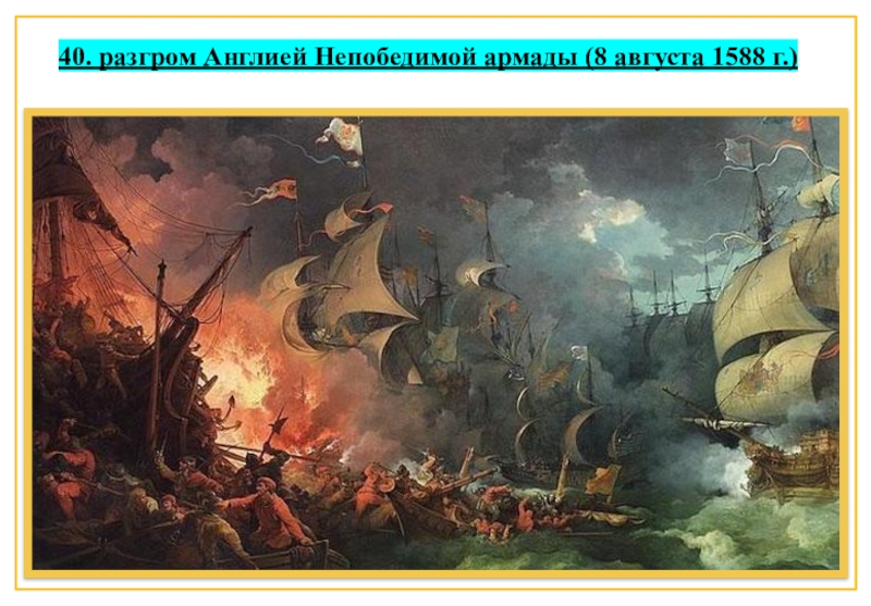 40. разгром Англией Непобедимой армады (8 августа 1588 г.)