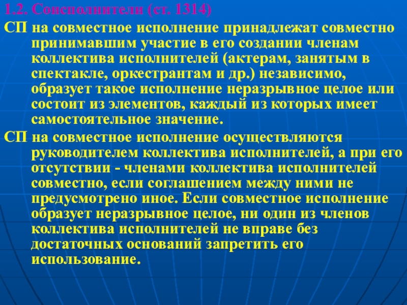 Слайд 12Исполнители осуществляют свои права с соблюдением прав авторов исполняемых произведений.