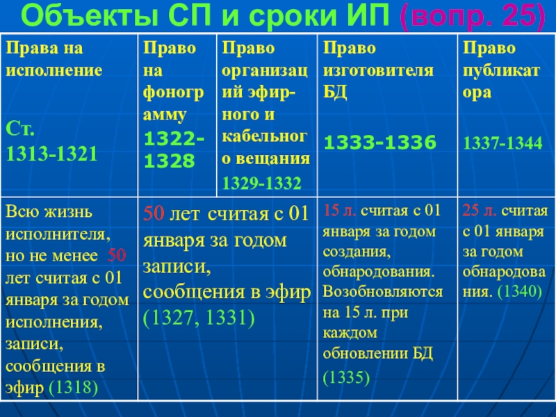 Слайд 3Объекты СП и сроки ИП (вопр. 25)