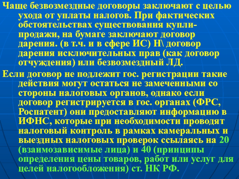 Слайд 16Чаще безвозмездные договоры заключают с целью ухода от уплаты налогов.