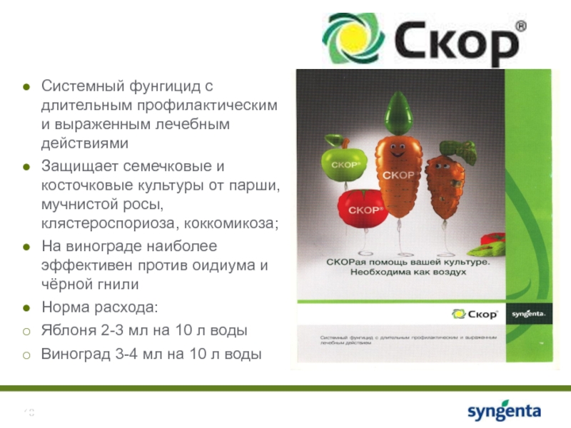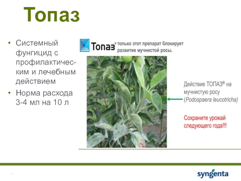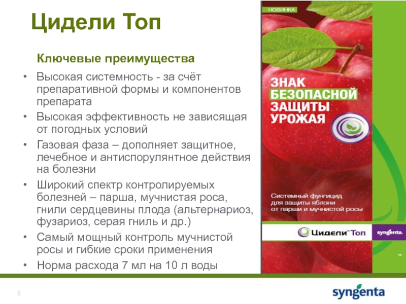 Позиционирование фунгицидов компании «Сингента» в критические фазы развития парши, мучнистой росы, гнилей сердцевины плода