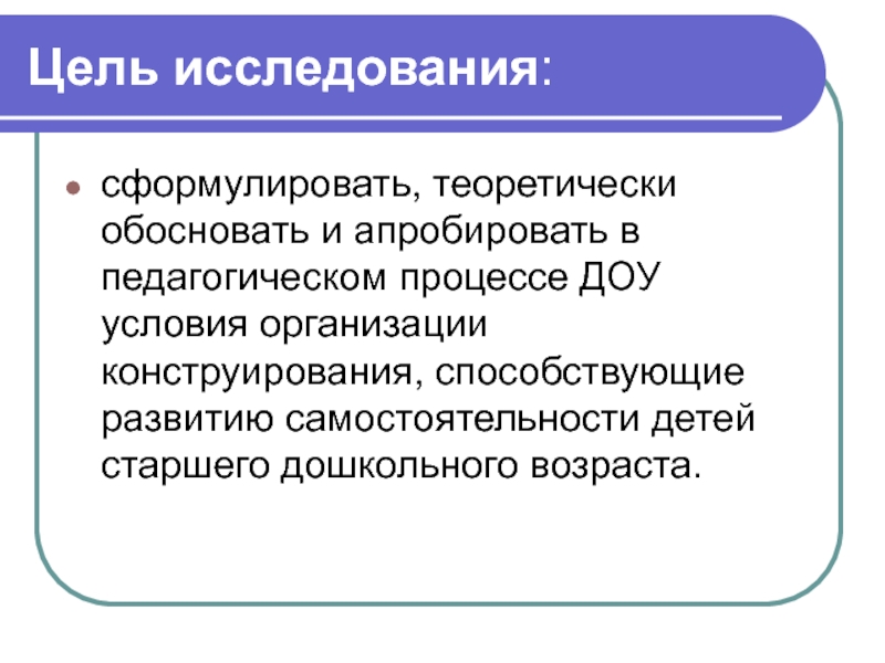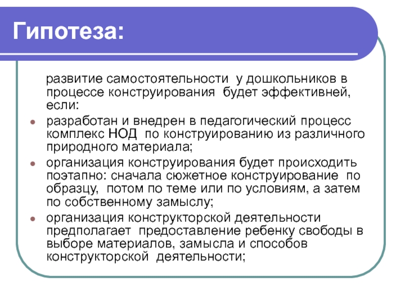 Организовать конструктивную деятельность, направленную на развитие самостоятельности детей старшего дошкольного возраста.