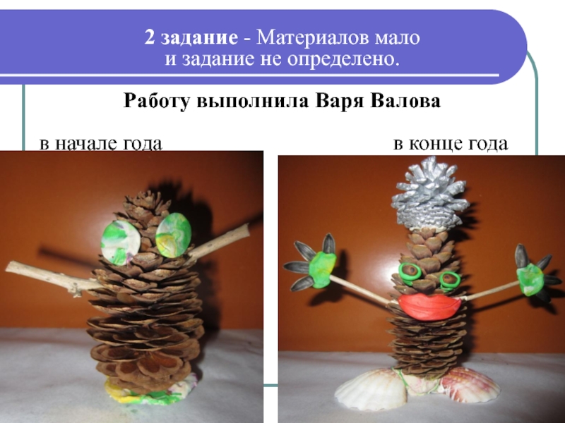 Если у ребенка не получалось самостоятельно подобрать материала для поделки, то мы предлагаем комбинации готовых решений, либо вычленение материалов из готовых комбинаций для создания собственного набора материалов.