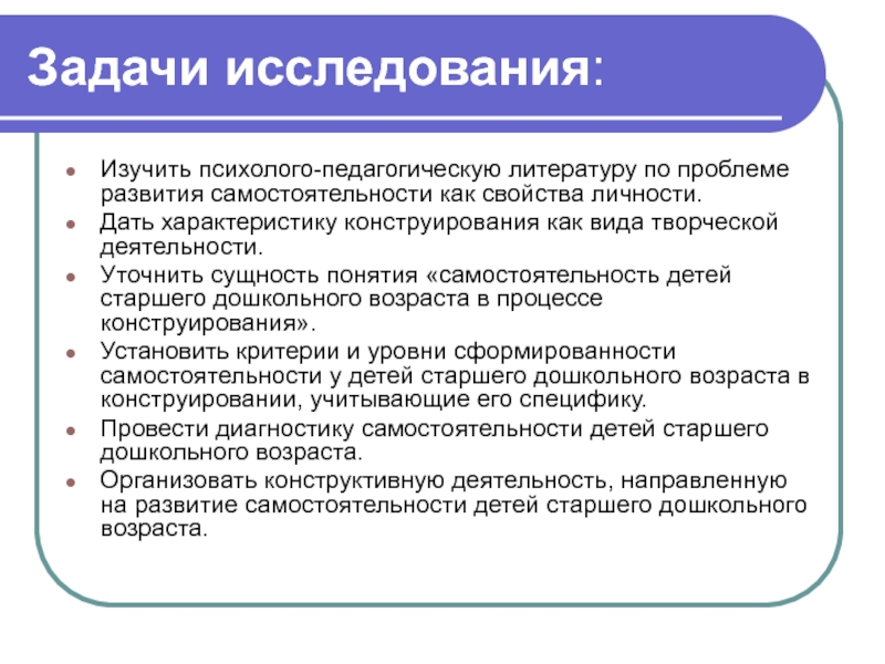 Изучить психолого-педагогическую литературу по проблеме развития самостоятельности как