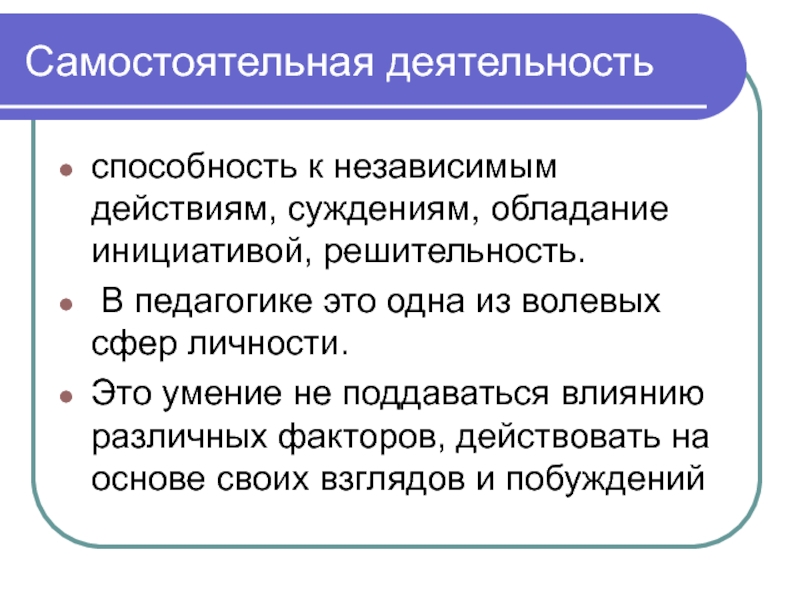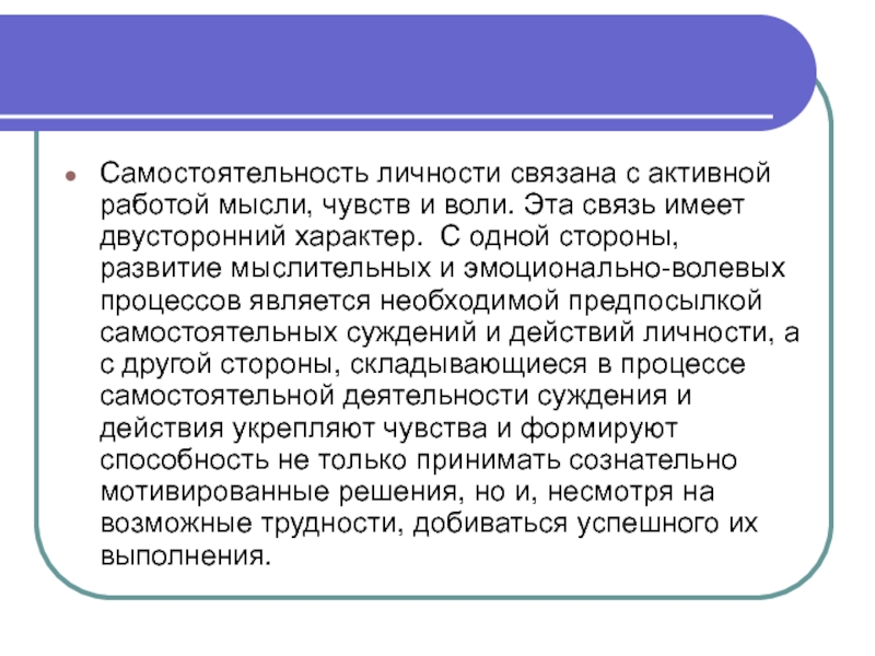 Слайд 13Самостоятельность личности связана с активной работой мысли, чувств и воли.