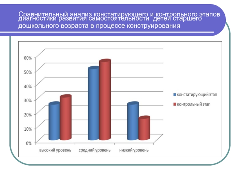 Слайд 33Сравнительный анализ констатирующего и контрольного этапов диагностики развития самостоятельности детей
