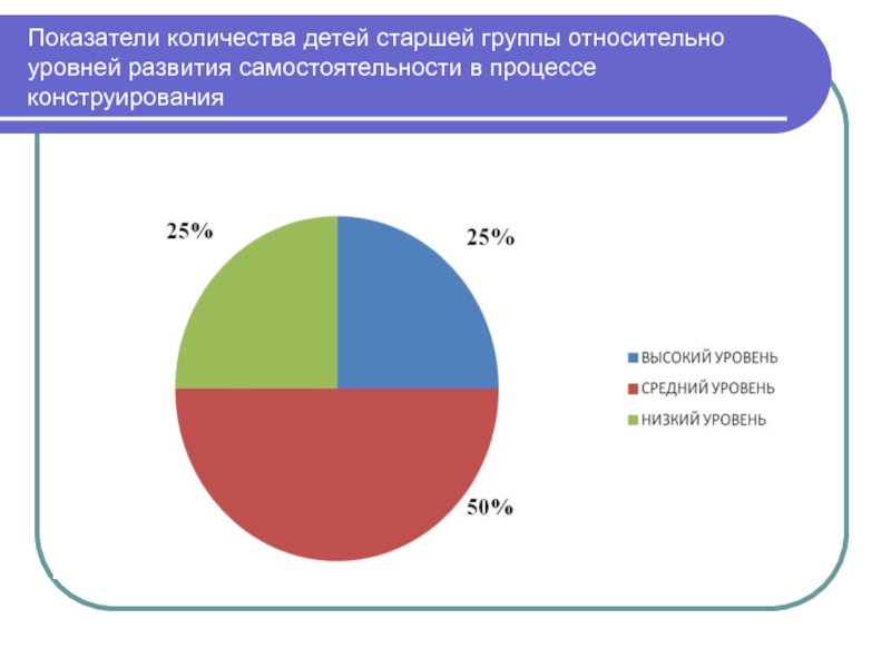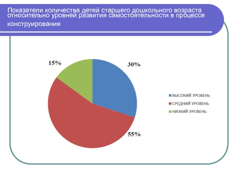 Слайд 25Результаты диагностики самостоятельности детей старшего дошкольного возраста в конструкторской деятельности