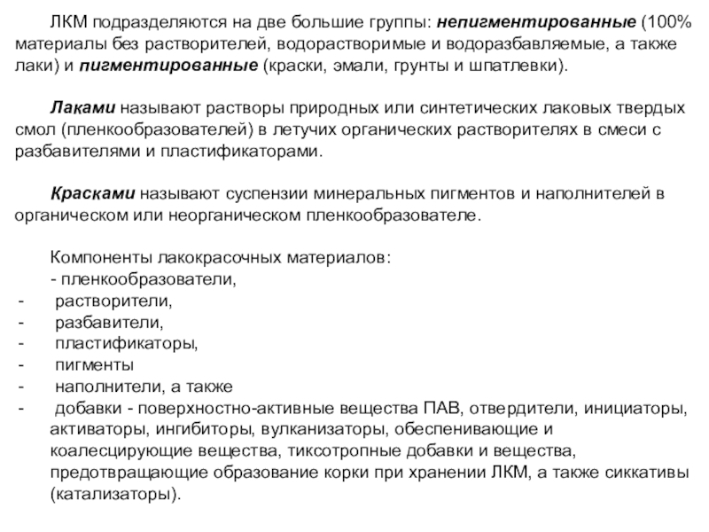 Слайд 2Лакокрасочными материалами называют вязкожидкие составы, наносимые на поверхность конструкции тонким
