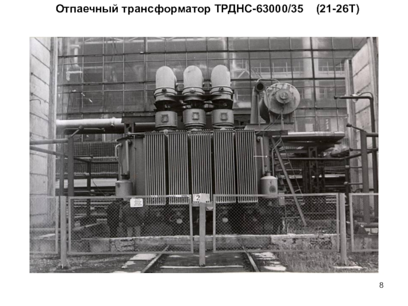Слайд 8Отпаечный трансформатор ТРДНС-63000/35 (21-26Т)