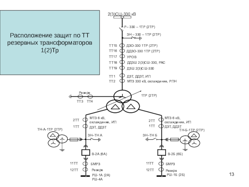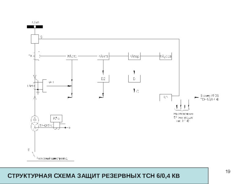 Слайд 19СТРУКТУРНАЯ СХЕМА ЗАЩИТ РЕЗЕРВНЫХ ТСН 6/0,4 КВ