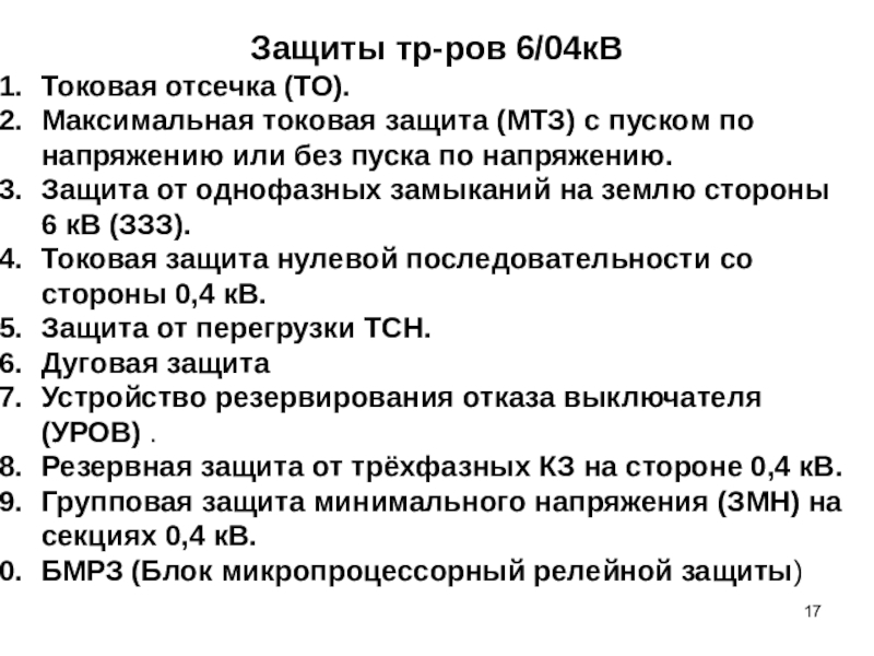 Слайд 18СТРУКТУРНАЯ СХЕМА ЗАЩИТ РАБОЧИХ ТСН 6/04КВ