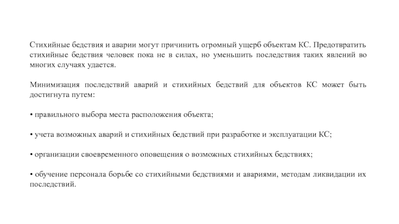 Слайд 17Стихийные бедствия и аварии могут причинить огромный ущерб объектам КС.