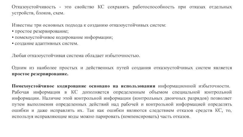 кодирование при создании отказоустойчивых систем, как правило, используется в комплексе