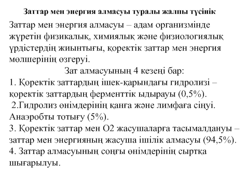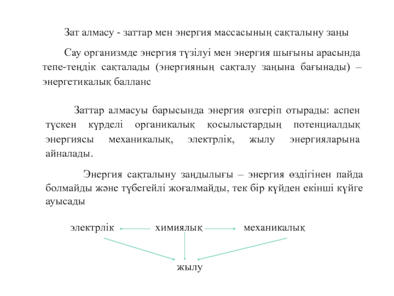 түсінігі. Энергиялық алмасуды зерттеу мәселелері жөніндегі тарихи тұжырымдар.3. Энергетикалық баланс. Организмдегі энергия көздері және энергияның шығу жолдары.