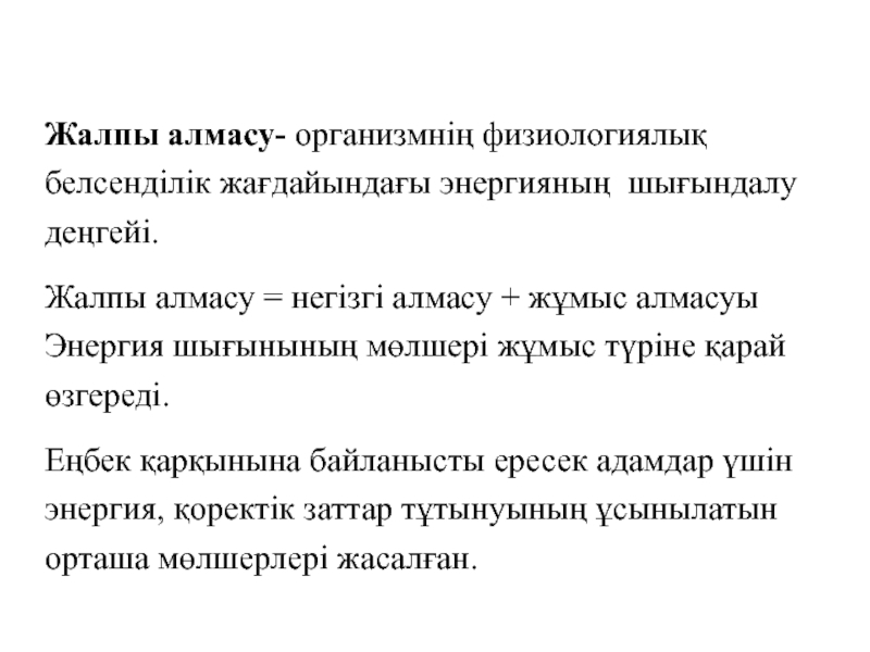 5. Жалпы энергия алмасуы. Жұмыстық алмасу.