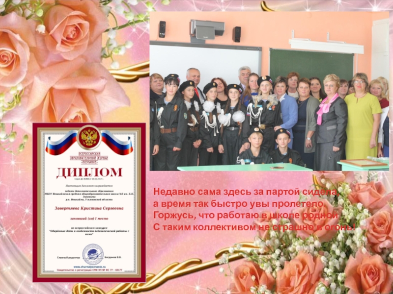 Недавно сама здесь за партой сидела, а время так быстро увы пролетело. Горжусь, что работаю в школе роднойС
