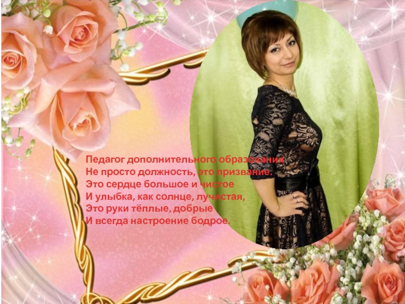 Педагог дополнительного образования Не просто должность, это призвание. Это сердце большое и чистое И улыбка, как солнце,