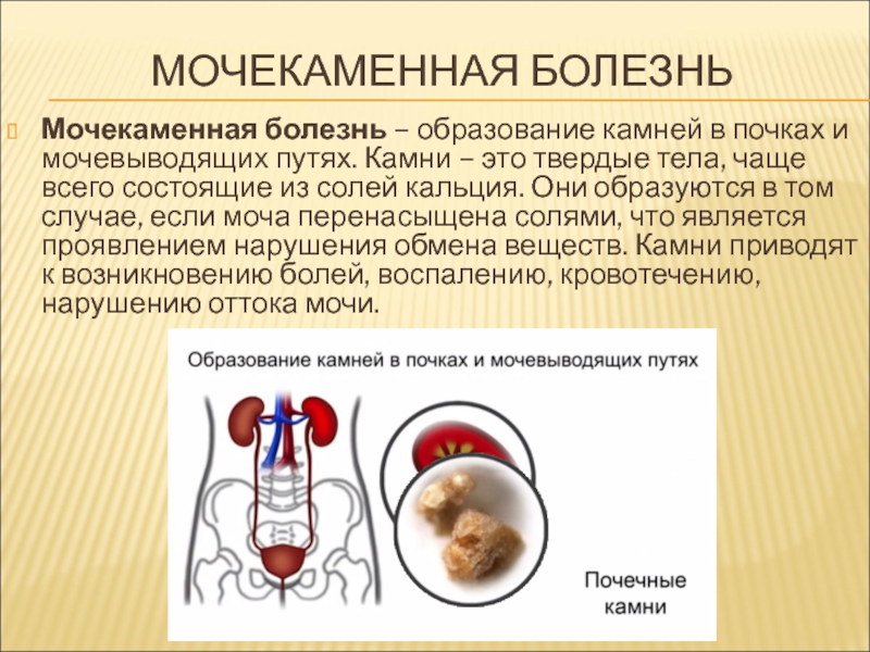Мочекаменная болезнь – образование камней в почках и мочевыводящих путях.