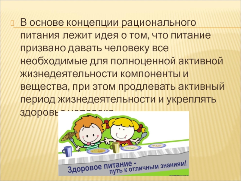 Слайд 23В основе концепции рационального питания лежит идея о том, что
