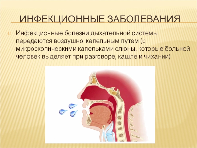 Инфекционные болезни дыхательной системы передаются воздушно-капельным путем (с микроскопическими
