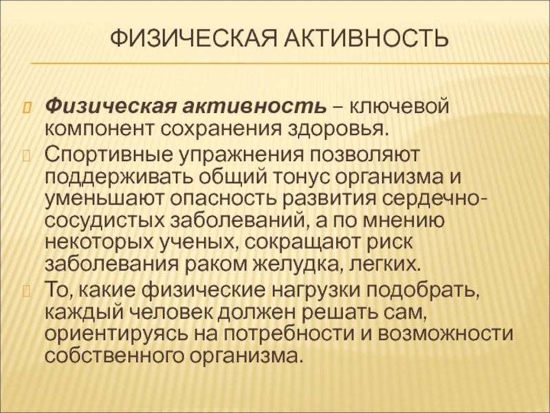 Здоровый образ жизни складывается из достаточных физических нагрузок, правильного питания, уважительного отношения к своему организму.
