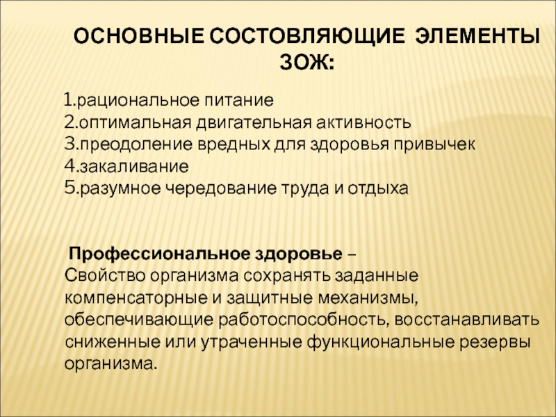 Слайд 21ОСНОВНЫЕ СОСТОВЛЯЮЩИЕ ЭЛЕМЕНТЫ ЗОЖ: