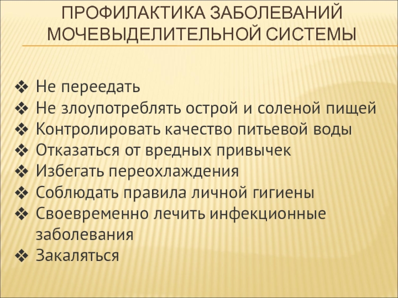 Слайд 81Профилактика заболеваний мочевыделительной системы