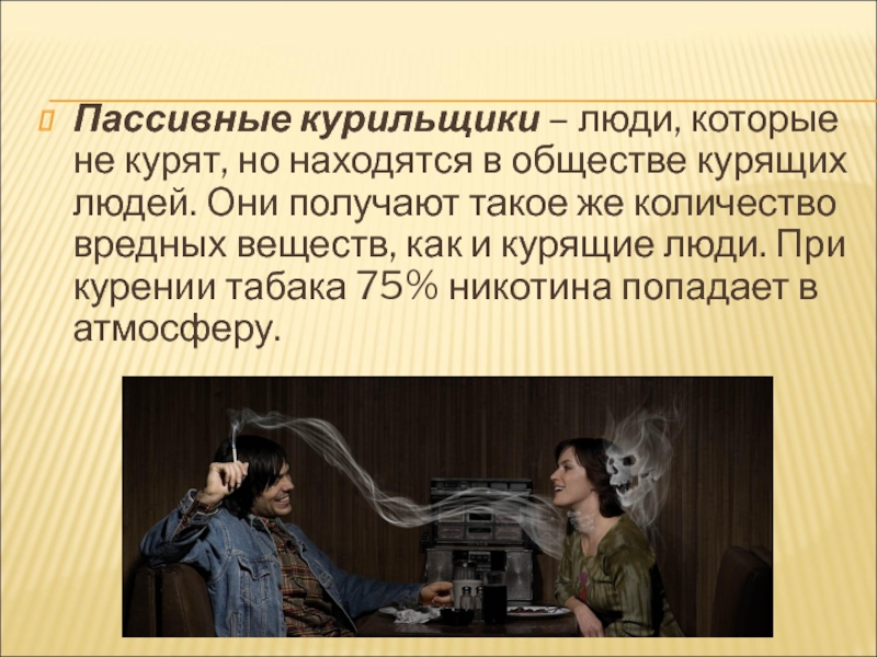 Слайд 75Пассивные курильщики – люди, которые не курят, но находятся в