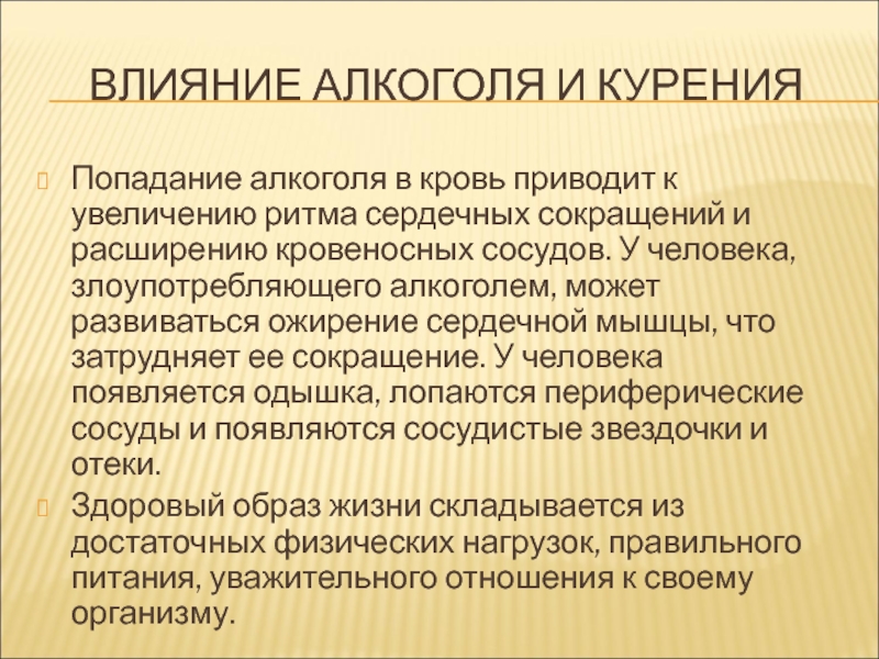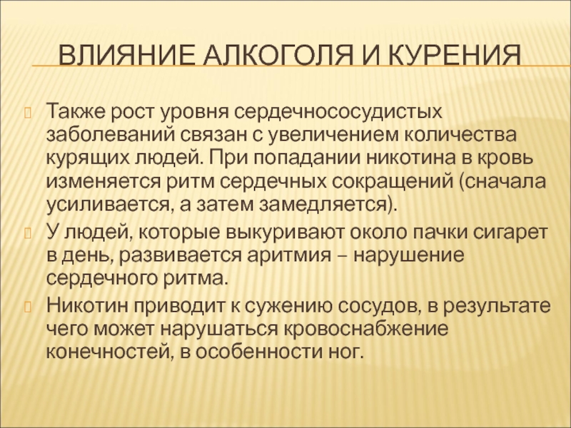 ритма сердечных сокращений и расширению кровеносных сосудов. У человека, злоупотребляющего