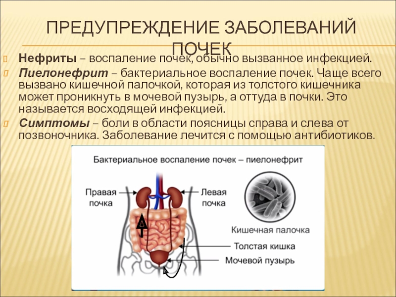 почек. Чаще всего вызвано кишечной палочкой, которая из толстого кишечника