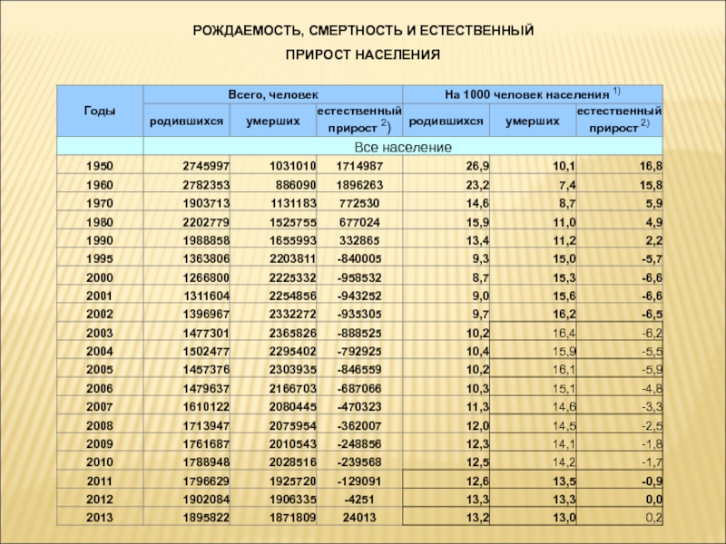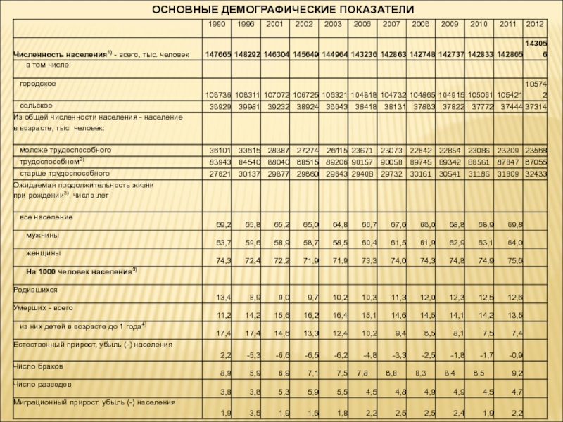 Слайд 17 ОСНОВНЫЕ ДЕМОГРАФИЧЕСКИЕ ПОКАЗАТЕЛИ