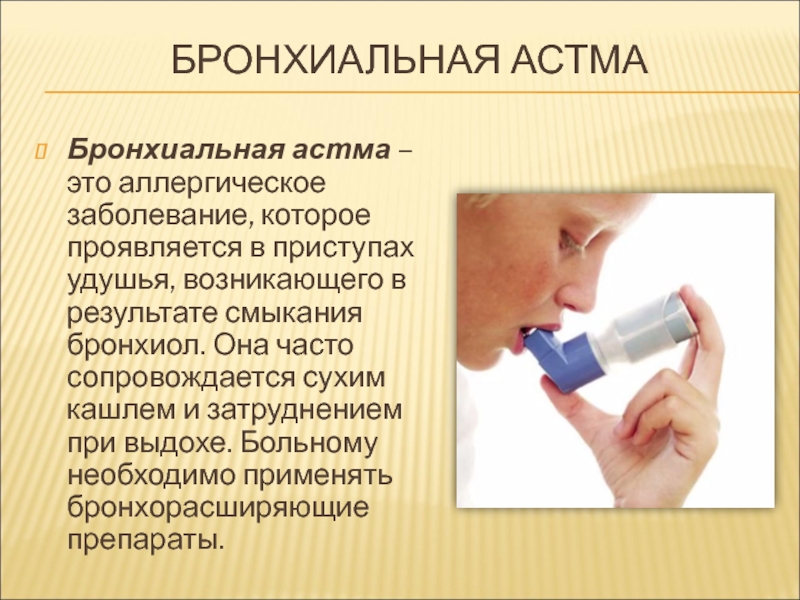 Бронхиальная астма – это аллергическое заболевание, которое проявляется в