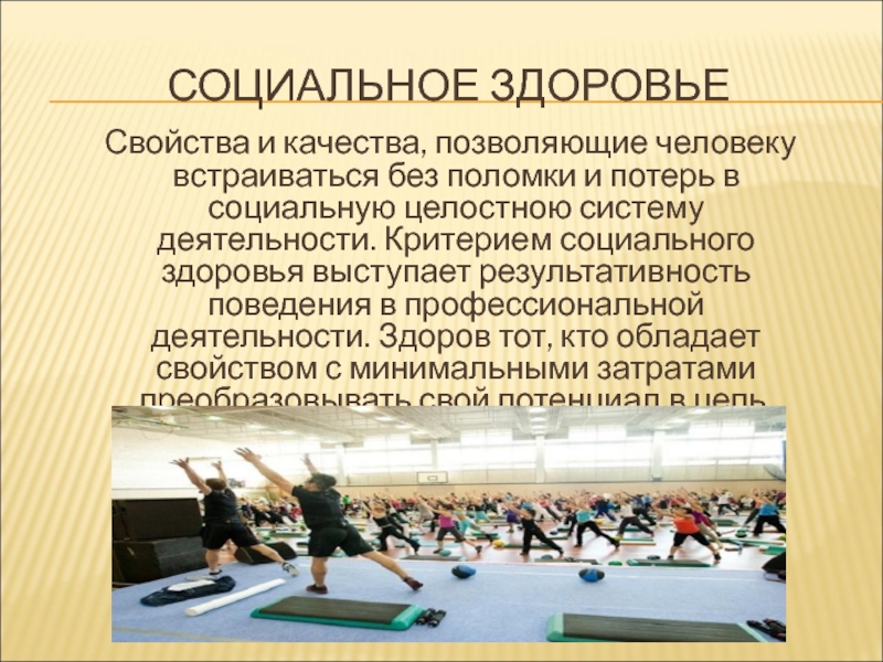 здоровья выступает результативность поведения в профессиональной деятельности. Здоров тот, кто обладает свойством с минимальными затратами преобразовывать свой потенциал в цель.