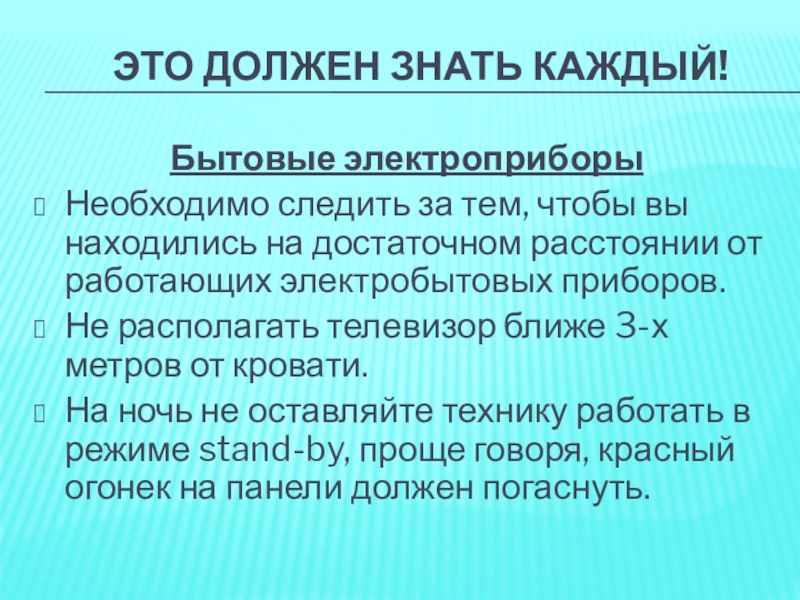 находились на достаточном расстоянии от работающих электробытовых приборов.
