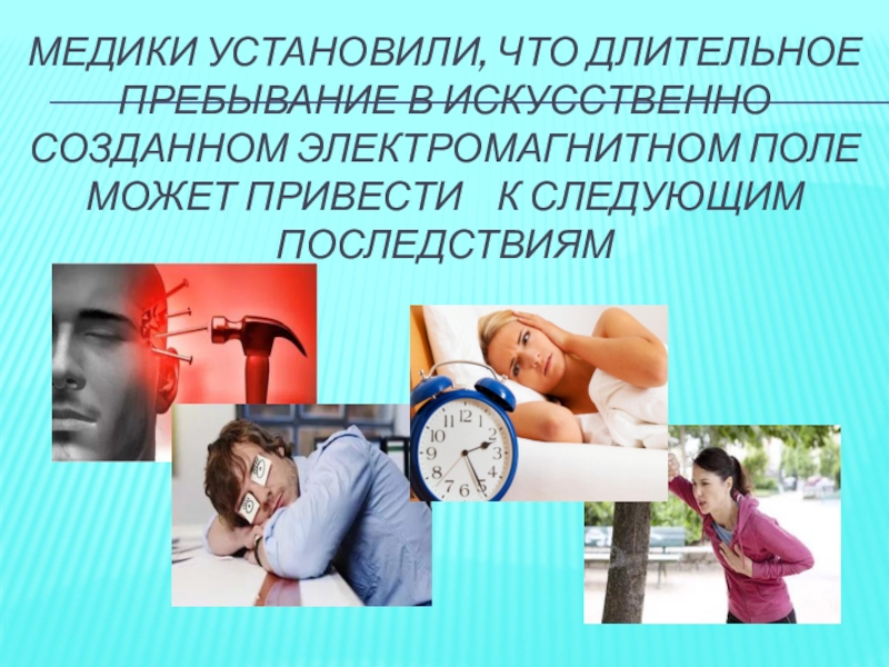 Слайд 9Медики установили, что длительное пребывание в искусственно созданном электромагнитном поле