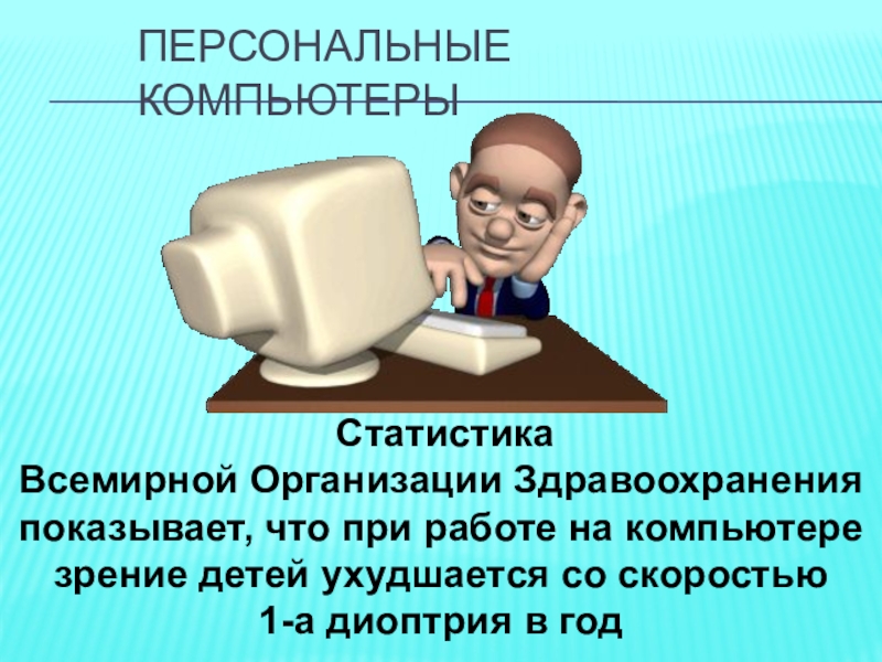 Всемирной Организации Здравоохранения показывает, что при работе на компьютере зрение детей ухудшается со скоростью 1-а диоптрия в год