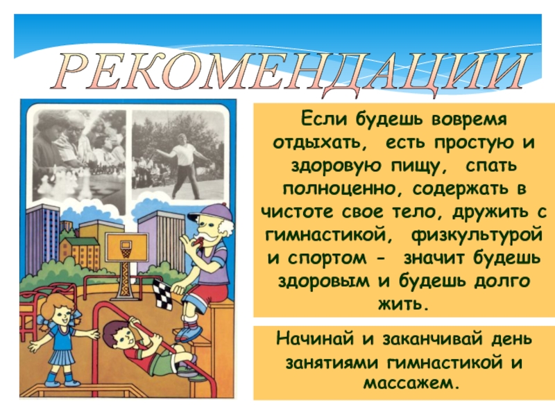 занятиями гимнастикой и массажем.