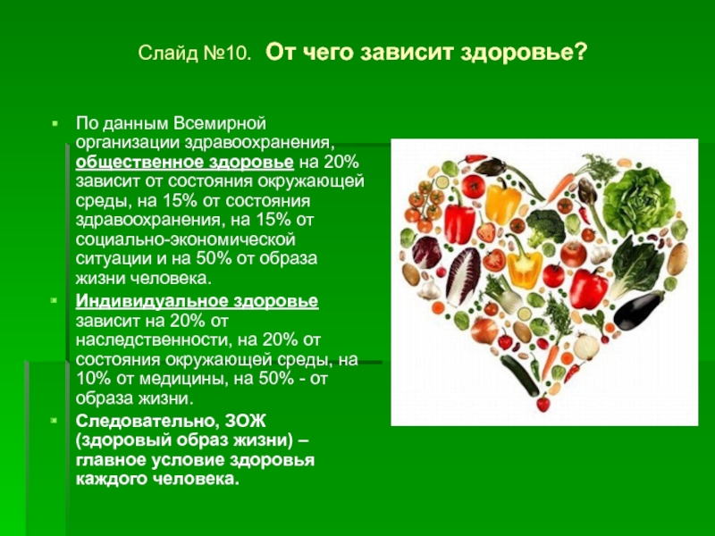 Слайд 10Слайд №10. От чего зависит здоровье?