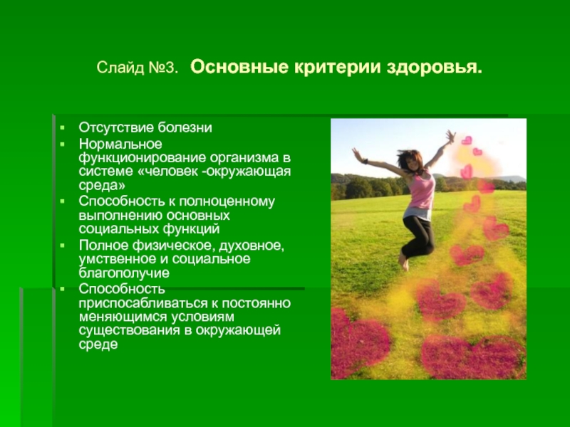 Слайд 3Слайд №3. Основные критерии здоровья.
