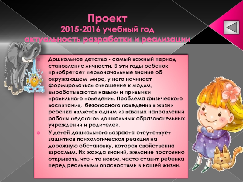У детей дошкольного возраста отсутствует защитная психологическая реакция на дорожную обстановку, которая свойственна взрослым. Их жажда знаний, желание постоянно открывать, что - то новое, часто ставит ребенка перед реальными опасностями в нашей жизни.