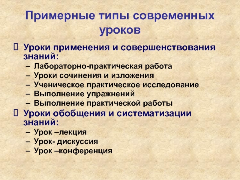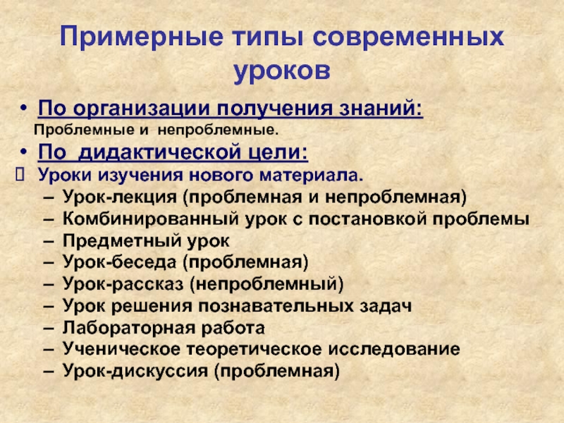 Примерные типы современных уроков